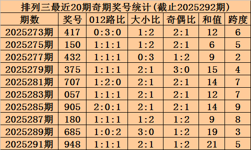 奇偶分析:罗列三最近3期奇偶比为2:1、1:2、2:1,奇偶类型开出:奇偶奇、奇偶偶、偶奇奇,本期预测奇数号码走热,参考奇偶比2:1,温存奇偶类型:奇偶奇组合。