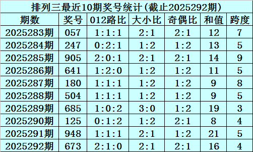 上期回来:罗列三2025292期奖号为673济南普铭威机电设备有限公司,奇偶比为2:1,大小比为2:1,跨度为16。