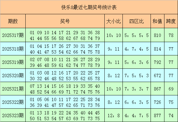 福彩昂扬8第2025323期开出奖号:01 13 18 19 22 24 35 40 44 45 50 51 53 54 57 63 69 71 73 75,其中奖号大小比为12:8济南普铭威机电设备有限公司,四区比为4:4:7:5,和值为877,跨度为74。